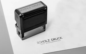 Stempel z. B. als Firmenstempel. Selbstfärbend mit austauschbaren Stempelkissen oder aus...